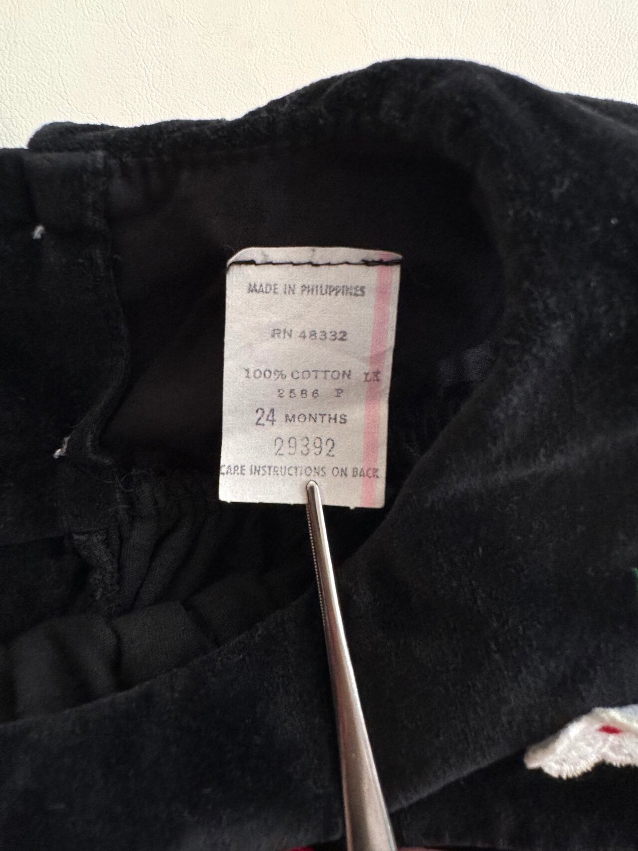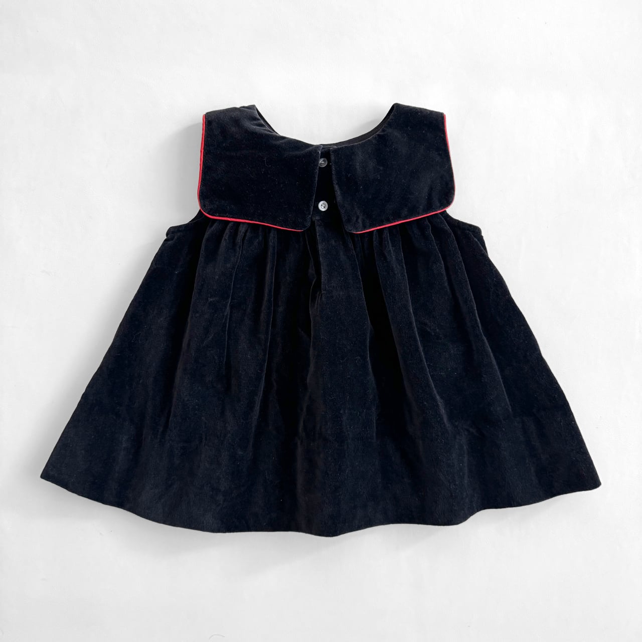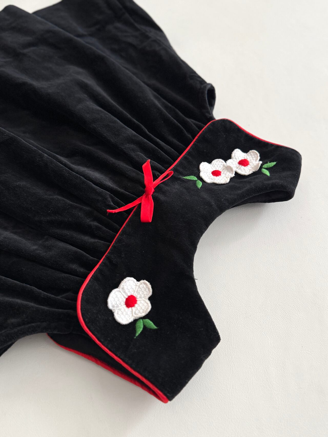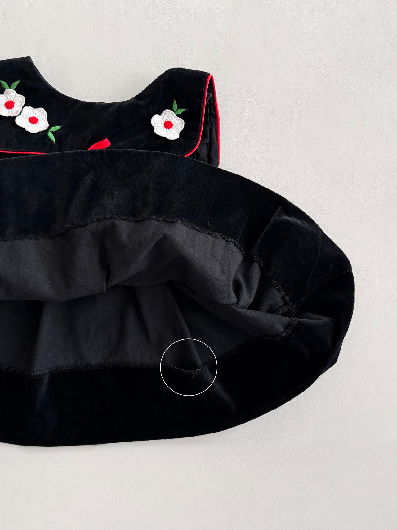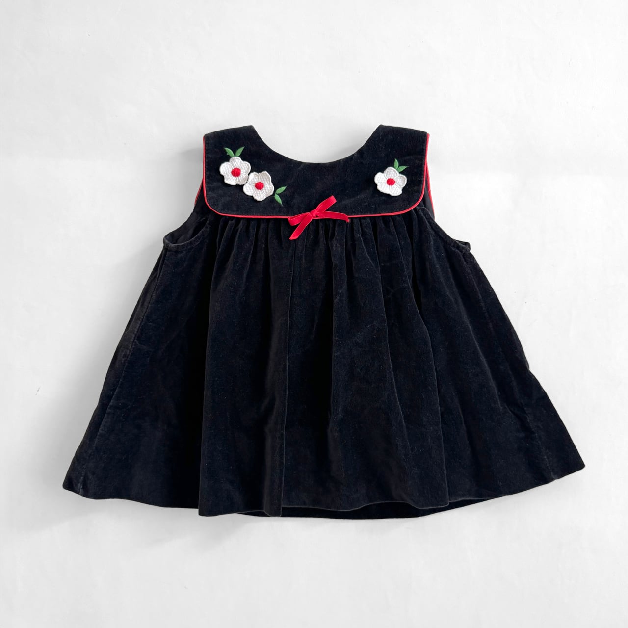 【vintage_24M(80-90cm)】90s Velour Floral Ribbon Tunic〈FT0068〉