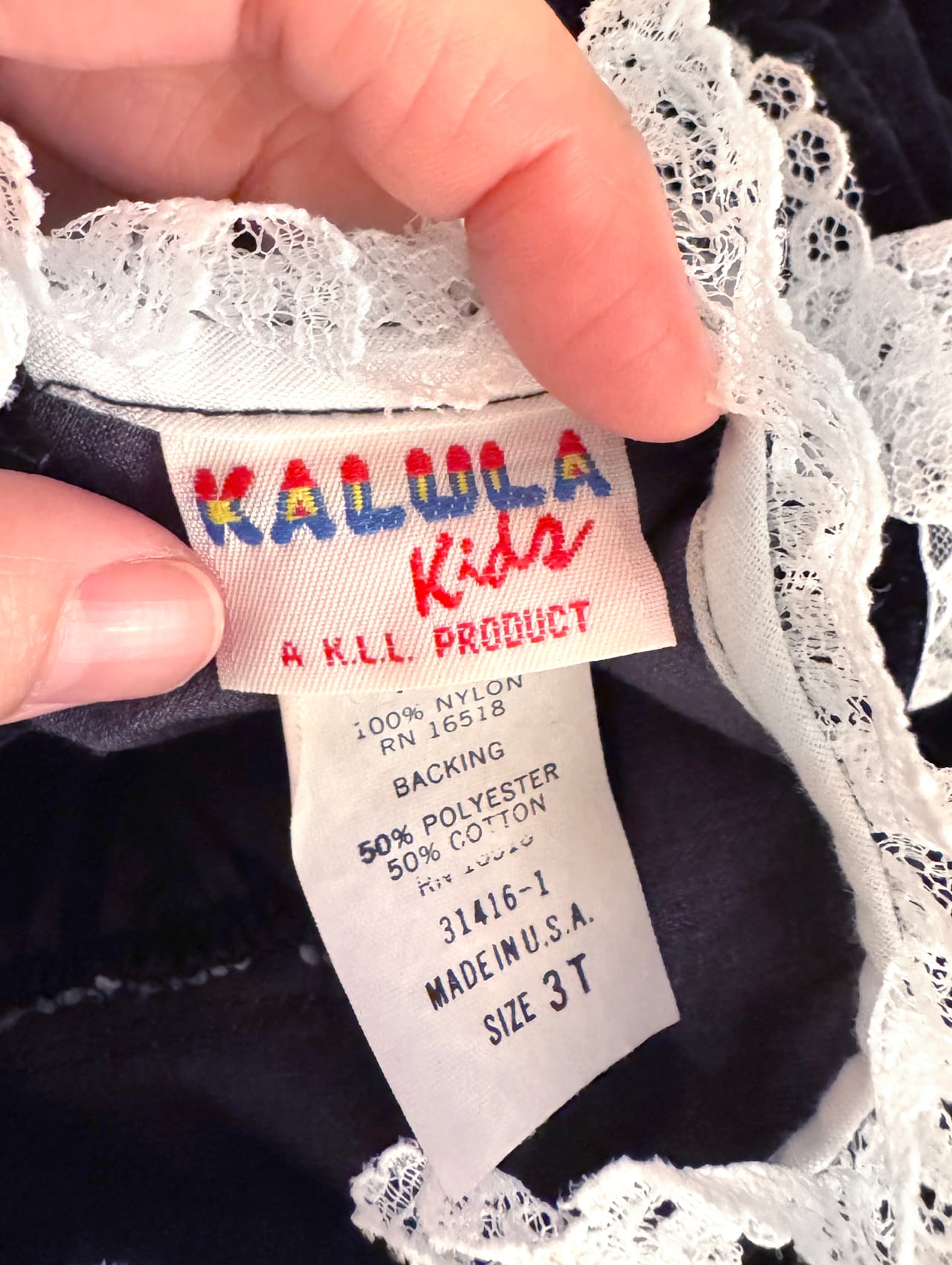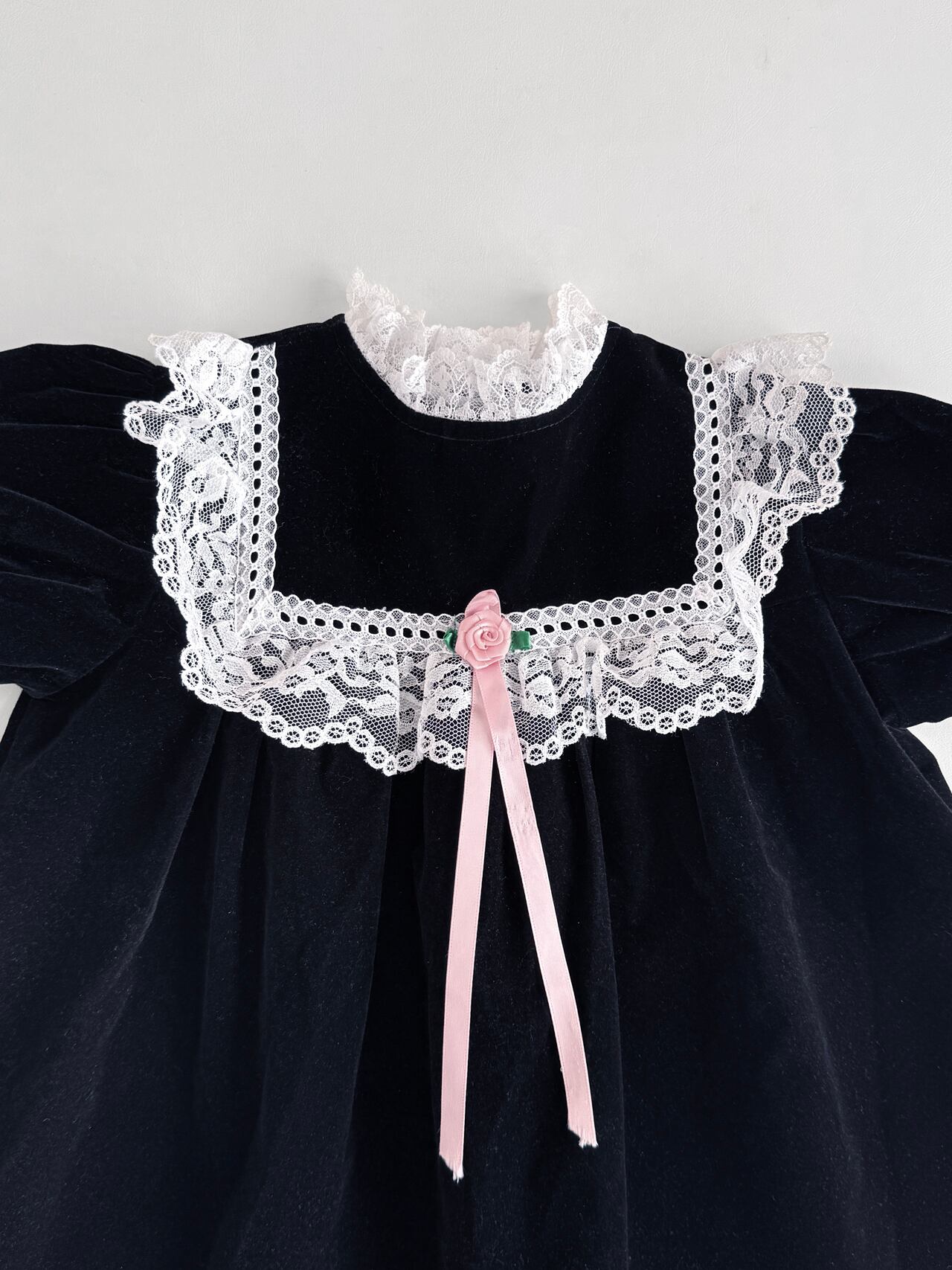 【USA製 vintage_(90cm)】90s KALULA Kids Lace Collar Velvet Tops〈FT0085〉