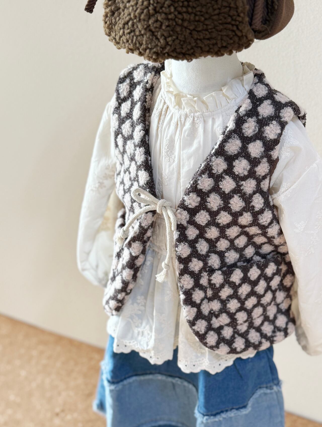 ほっこりかわいいドット柄のベストです